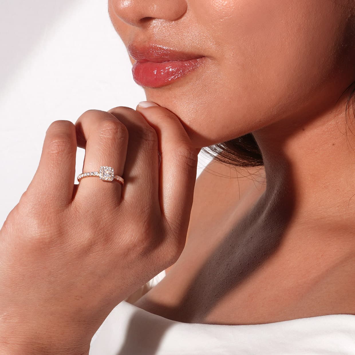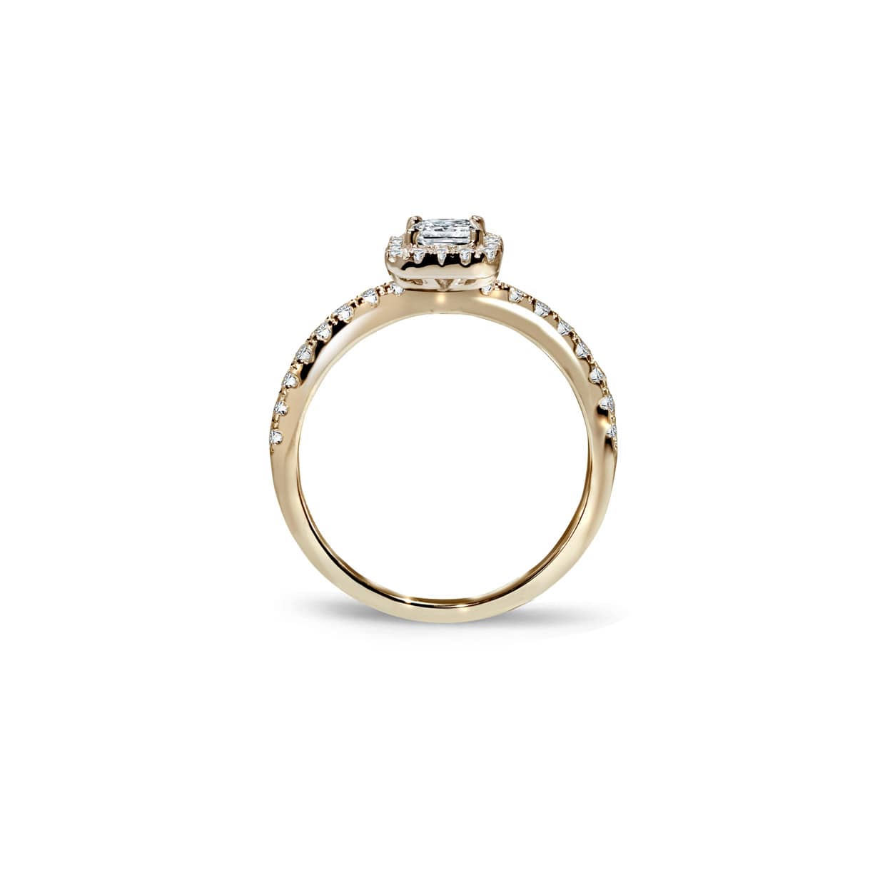Experience the height of elegance and sophistication with our stunning princess-cut diamond engagement ring, featuring a dazzling diamond halo and delicate diamonds down the band, now available in classic gold. Expertly crafted with the finest materials, this ring exudes unparalleled brilliance and beauty.